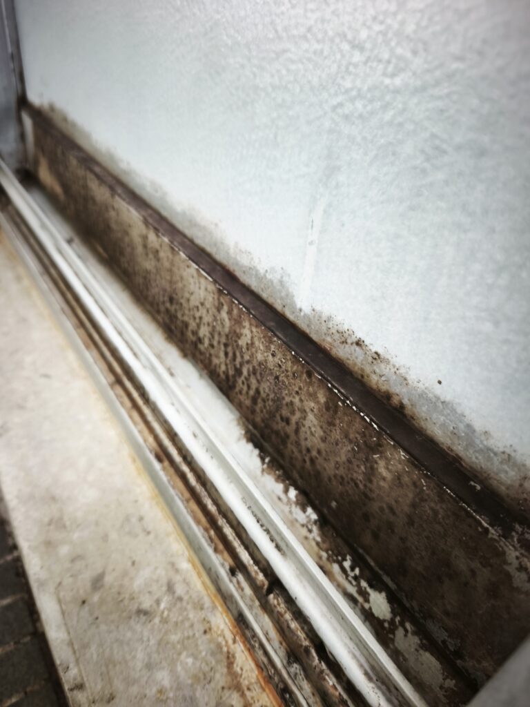 サッシのレール部分が真っ黒になっていて、カビが広範囲に広がっている状態でした。