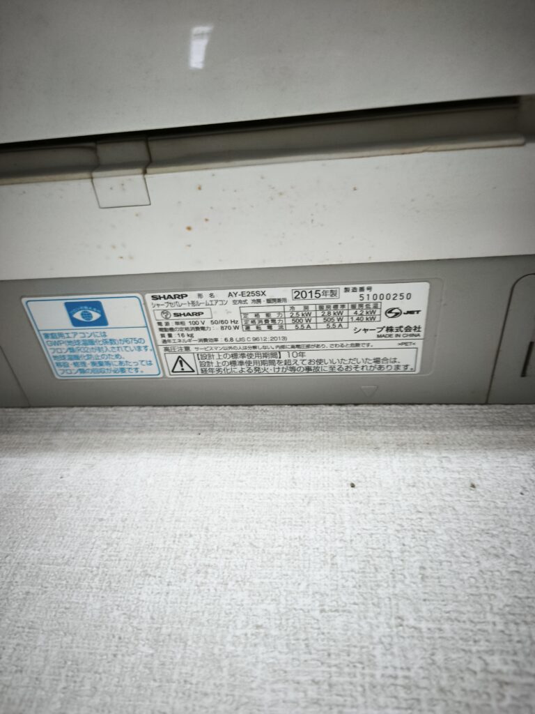2015年製ということで、約10年使用されたエアコンです。