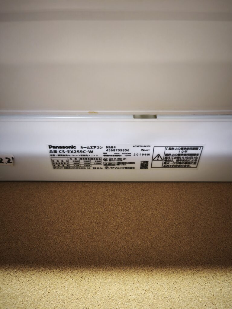 八街市のお客様より、エアコンクリーニングのご依頼をいただきました。今回ご使用のエアコンはPanasonic Eolia(CS-EX259C-W・2019年製)。